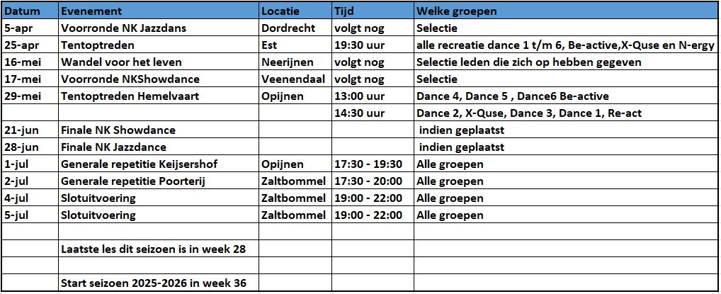 Onder voorbehoud alvast even de wedstrijddata van dit seizoen in beeld: Wij zullen opteren voor 28 maart (jazzdance),